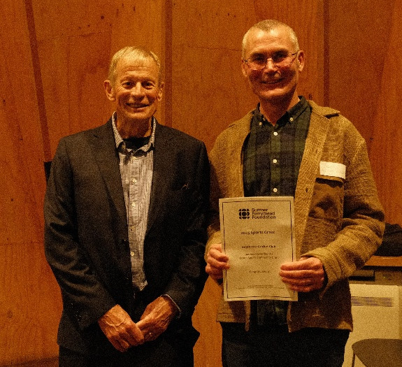 Sumner Ferrymead Foundation Trustee, John Christensen and Ralph Bungard from Heathcote Cricket Club, recipients of the Sports Award
